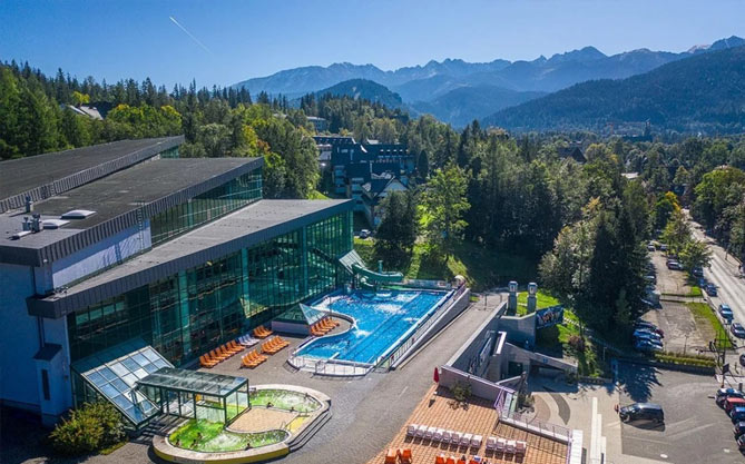 Kompleks składa się z 4 basenów sportowych i rekreacyjnych, basenu termalnego, brodzika dla dzieci i wielu zjeżdżalni. Moc wrażeń dla małych i dużych. Na terenie AquaParku zlokalizowane są też inne obiekty jak na przykład: kręgielnia, fitness oraz obiekty gastronomiczne.