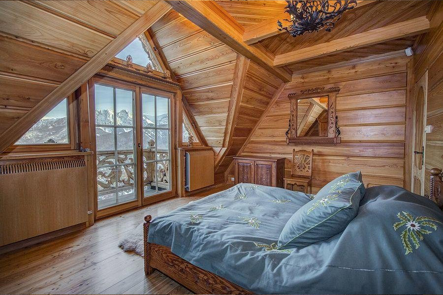 Na poddaszu stworzono prywatną strefę gości, w skład której wchodzą 3 sypialnie oraz łazienka. Każdy pokój posiada własny balkon ze spektakularnym widokiem na Tatry. Południowo – zachodnia ekspozycja sprawia, że każde z pomieszczeń jest doskonale doświetlone i nasłonecznione.